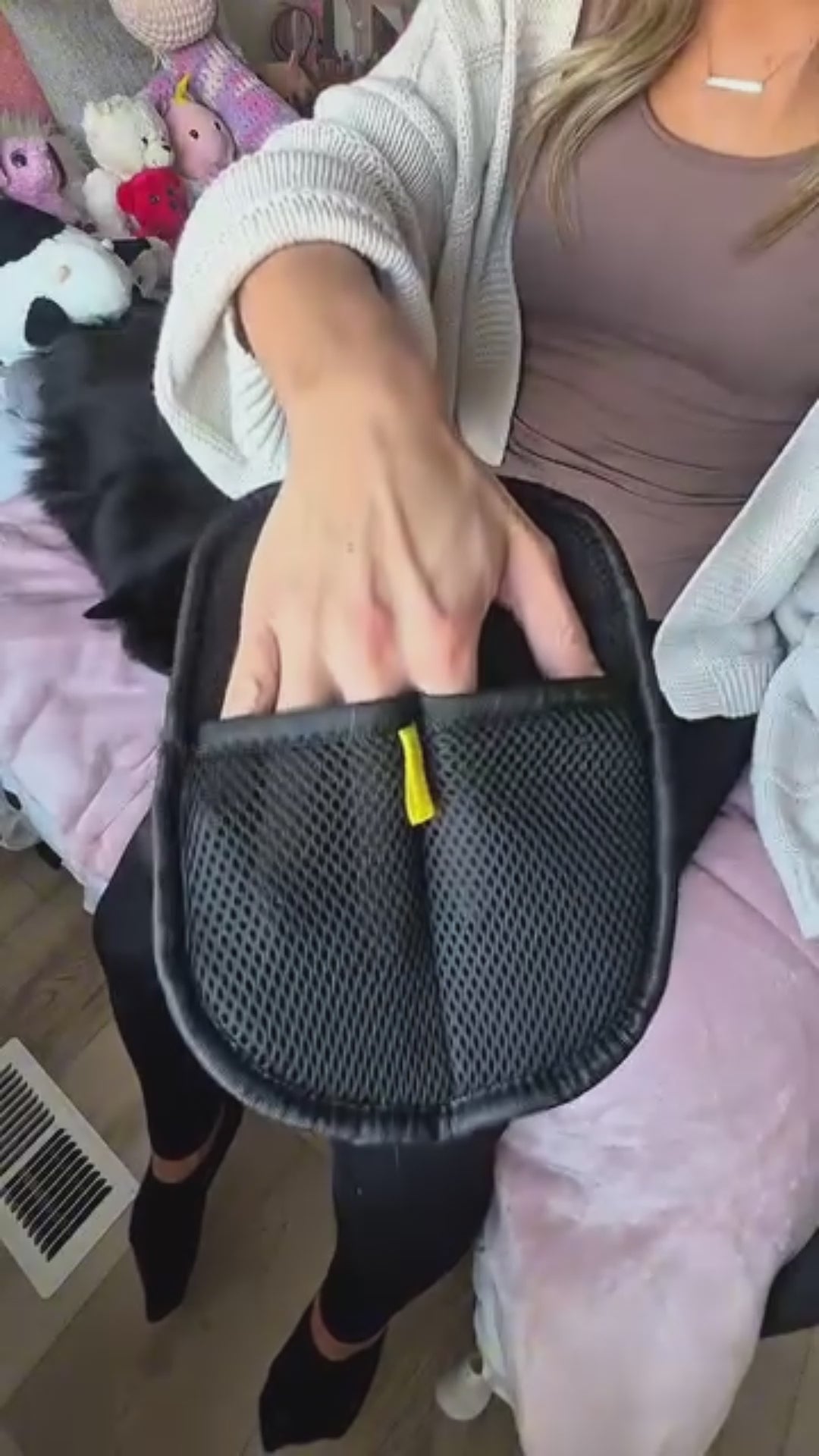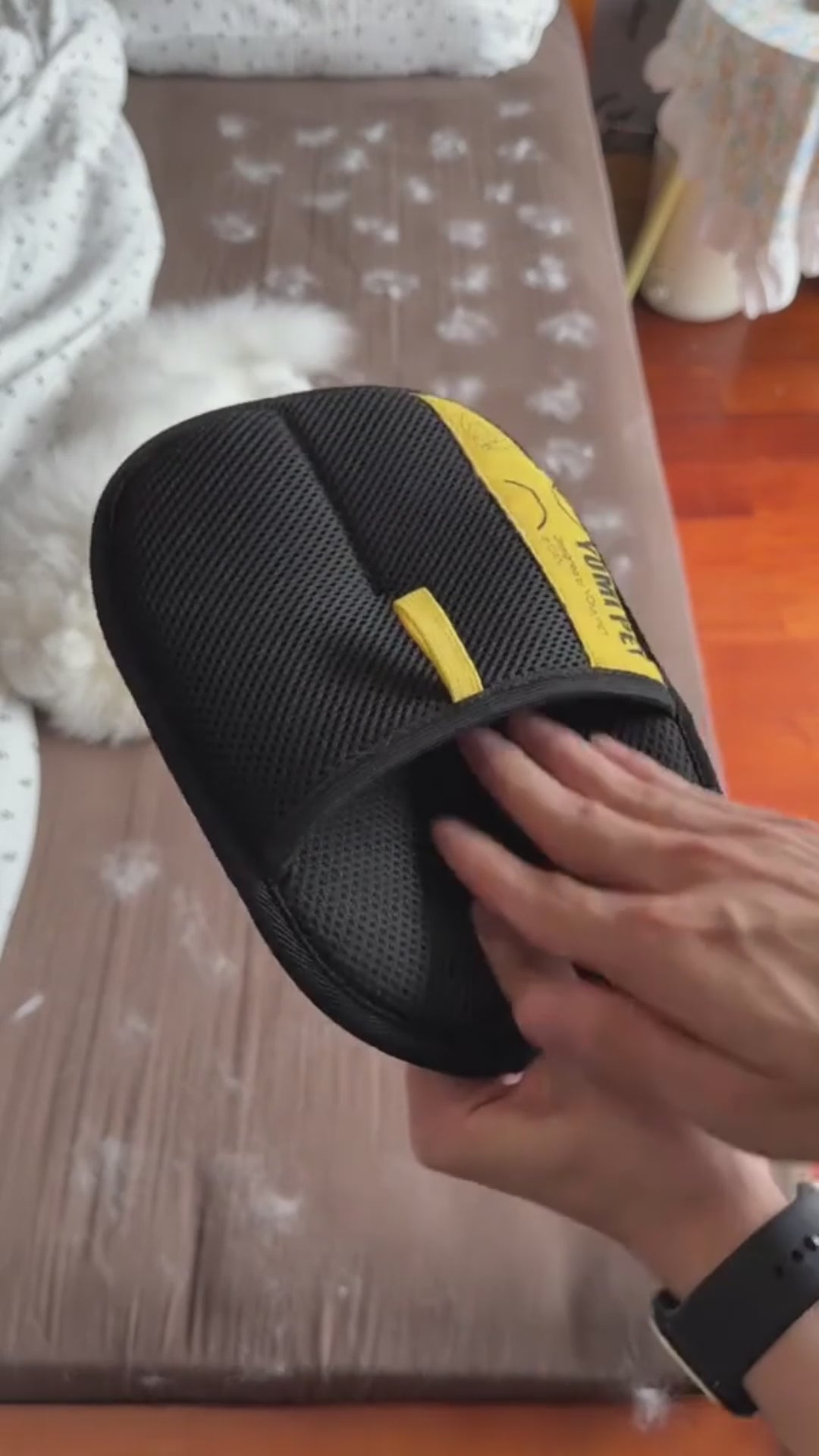 Il guanto rimuovi peli Varibee è progettato per rimuovere i peli di cani e gatti da ogni tessuto.